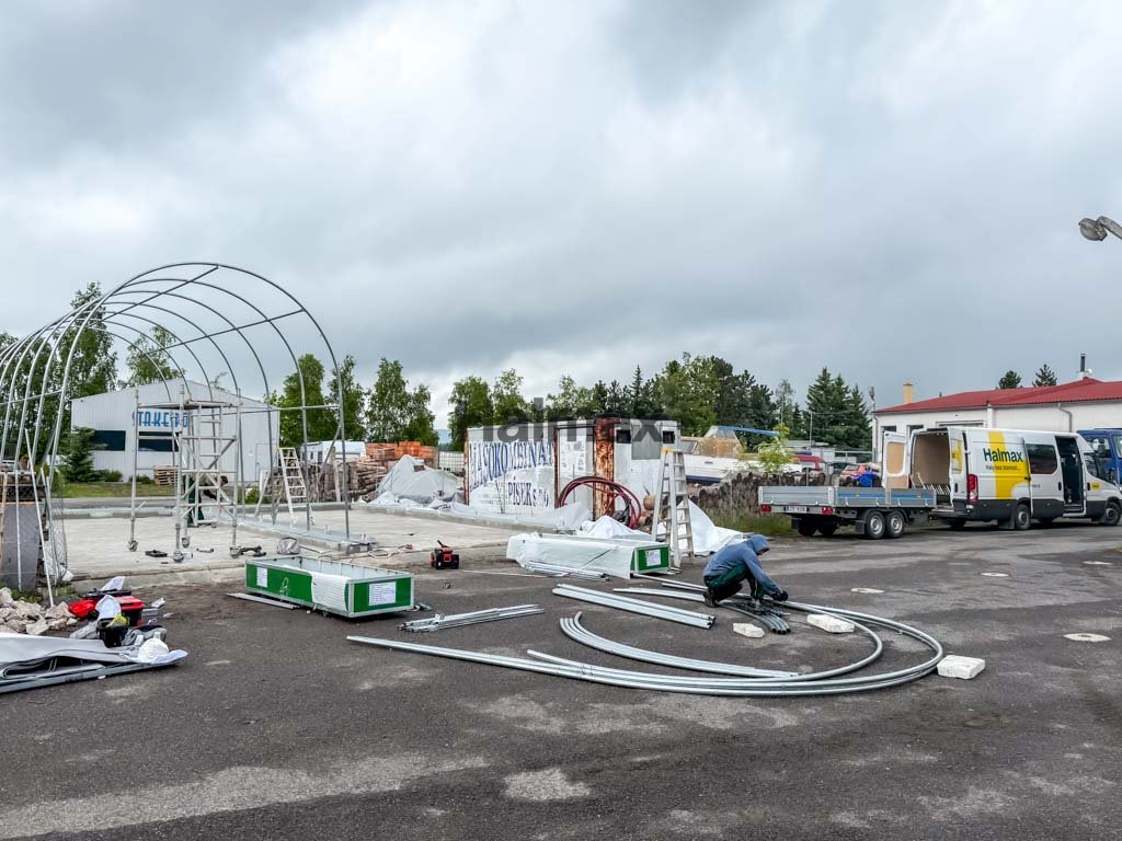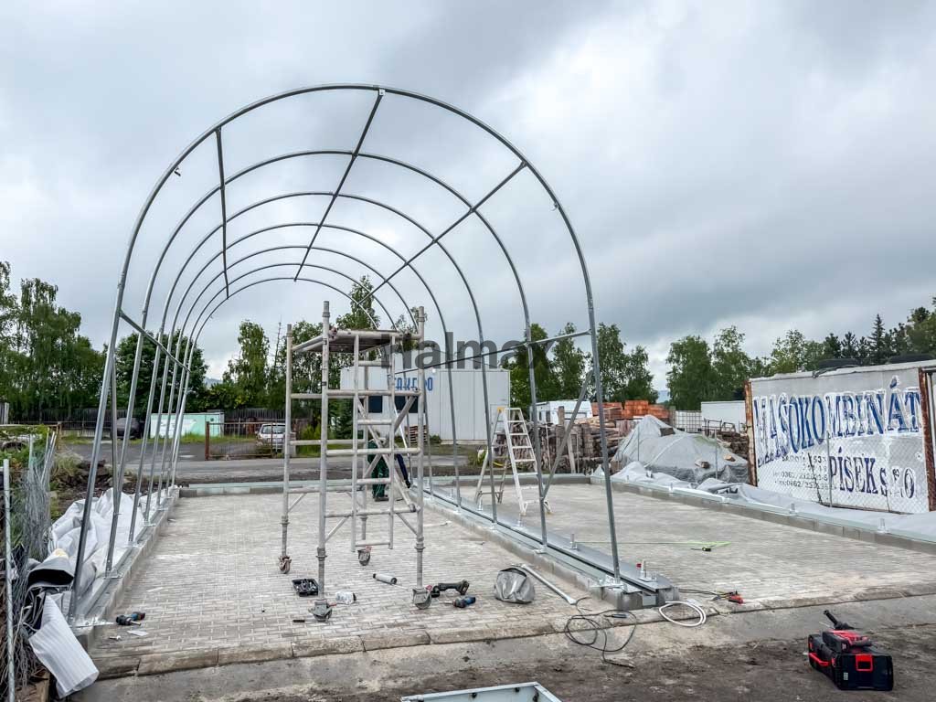 Montáž plachtovej garáže